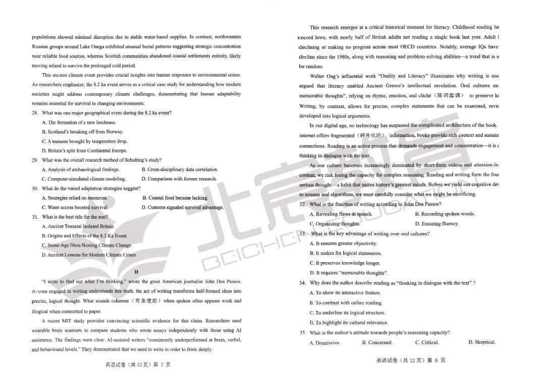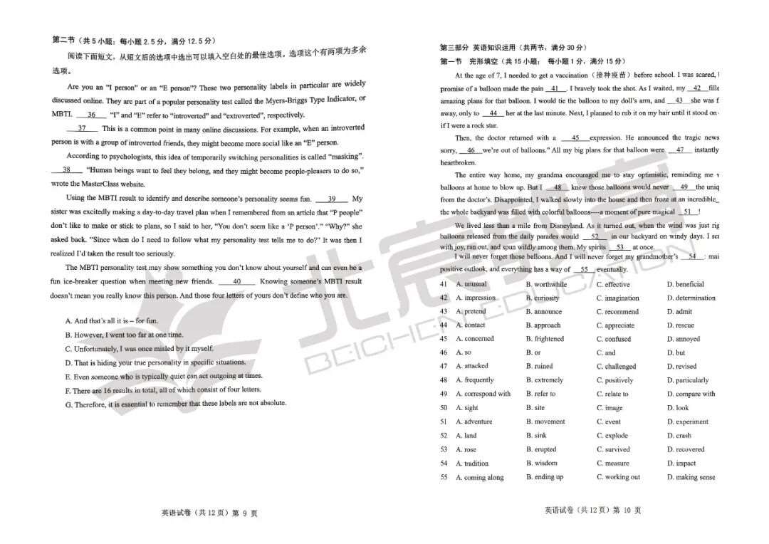 全科真题+解析