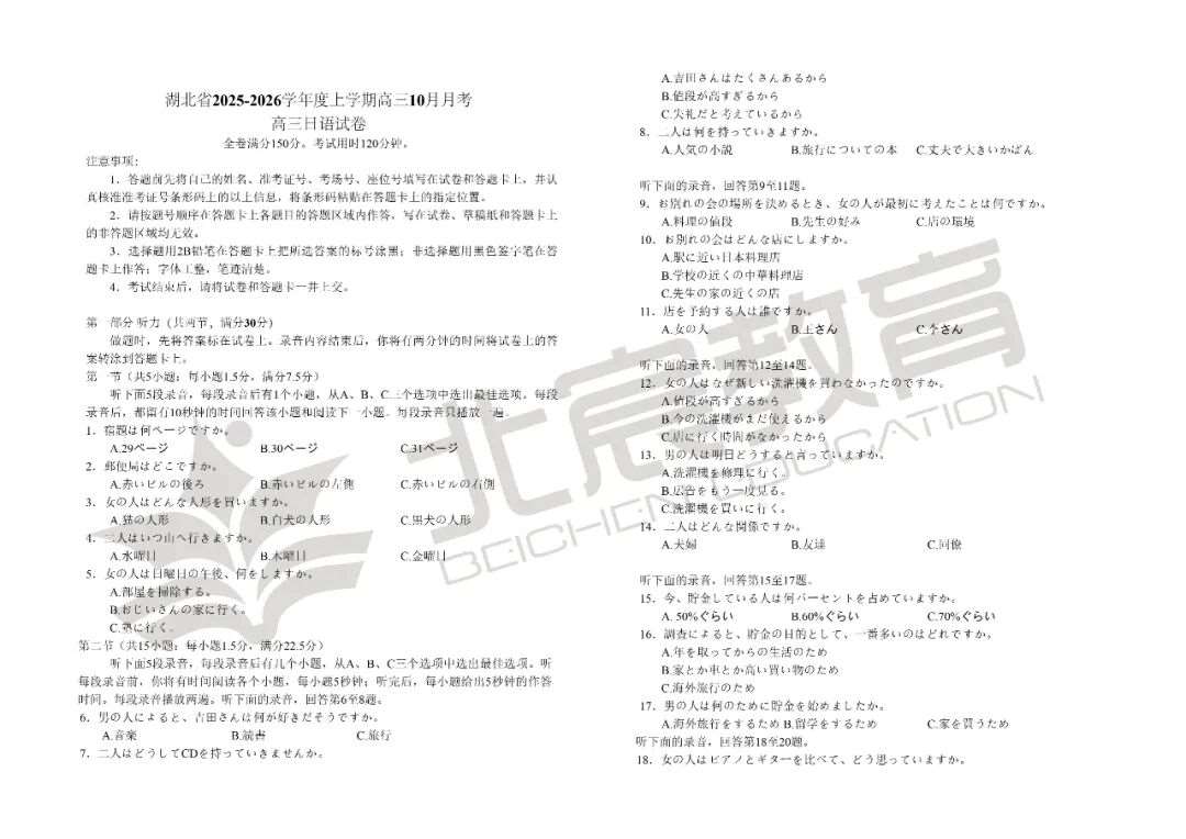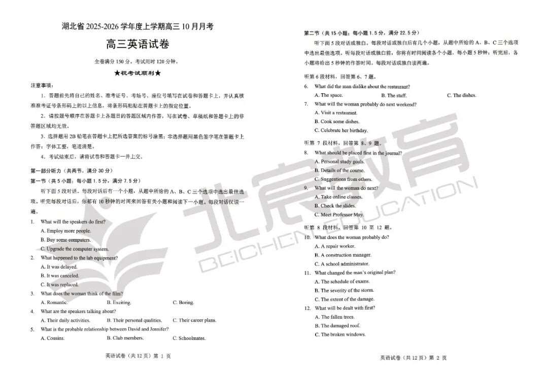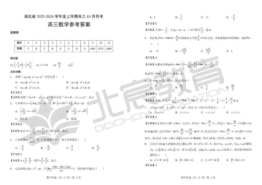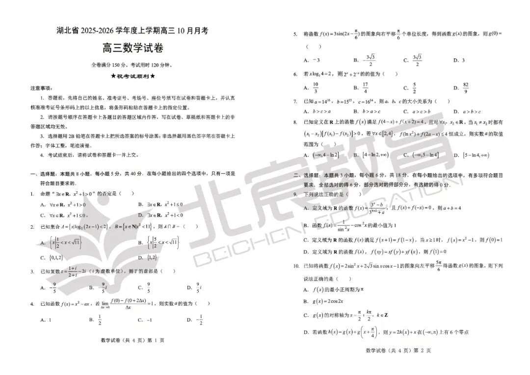 武汉北宸教育|2026届湖北省新八校协作体全科试卷及答案解析!