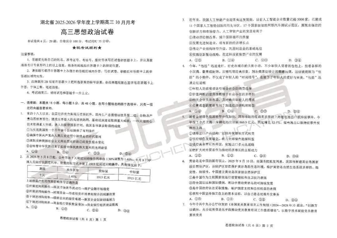 2026最新试卷+老师点评