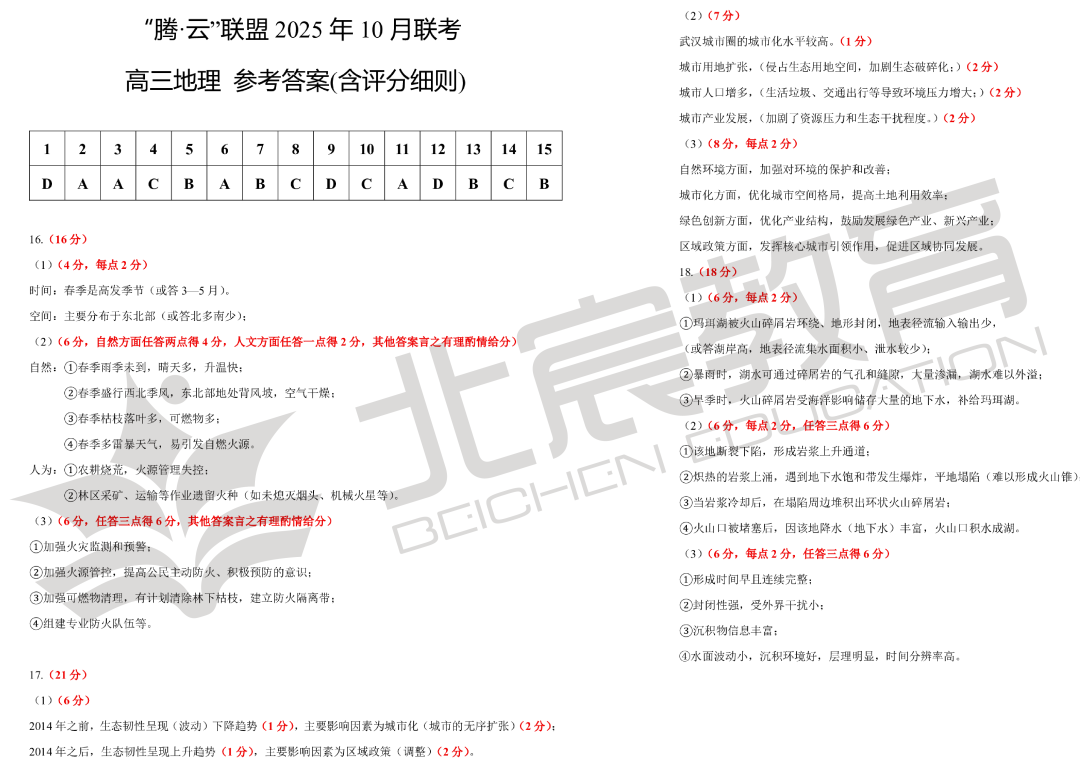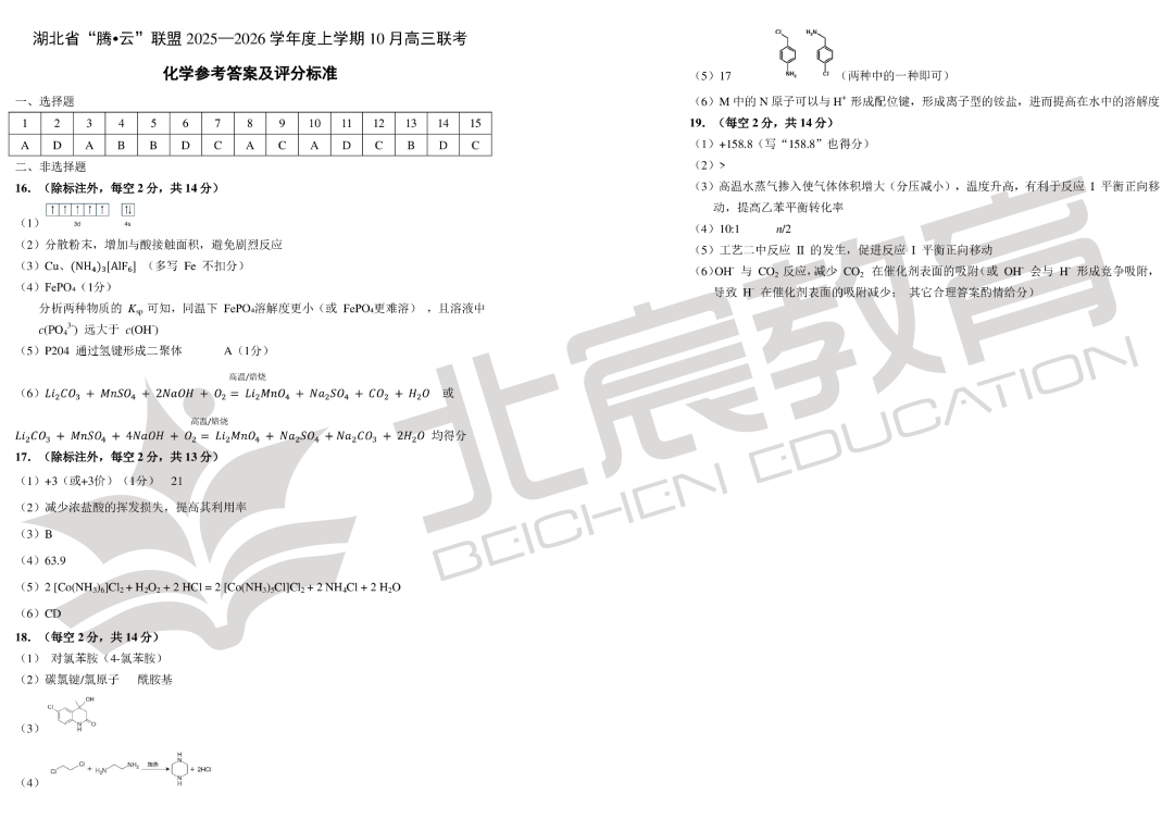 武汉北宸教育|2026届湖北省腾云联盟全科试卷答案已出