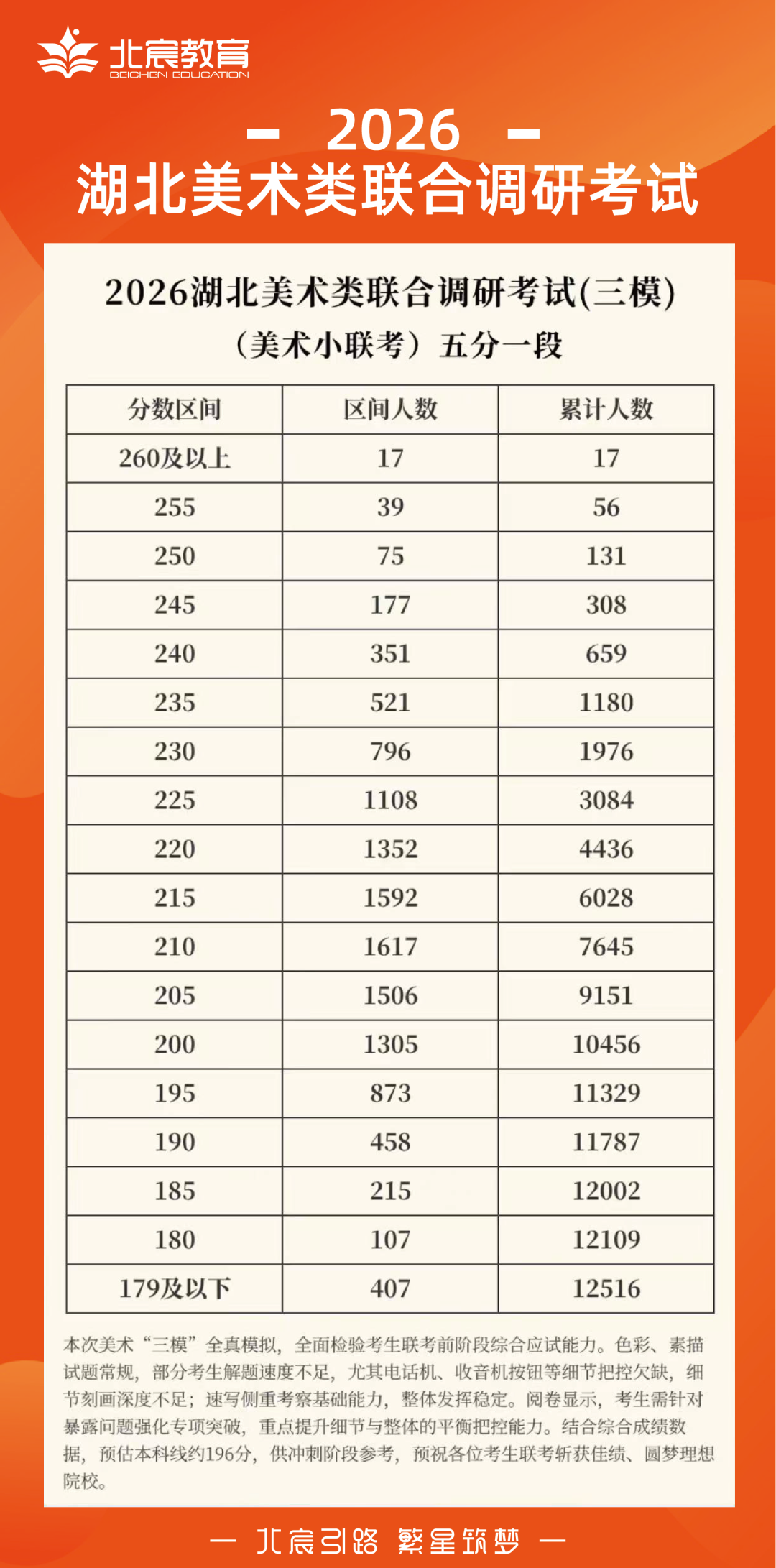 武汉北宸教育|26届湖北美术二模*已公布!本科分数线195分